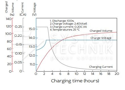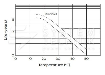 - Срок хранения без подзаряда: 6 мес. при 25°C;