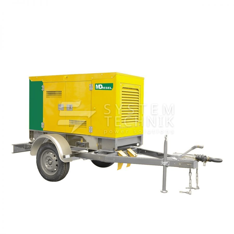 Дизельный генератор MitsuDiesel МД ЭД-150-Т400-1РКМ29 в шумозащитном кожухе на шасси на прицепе в Протвино