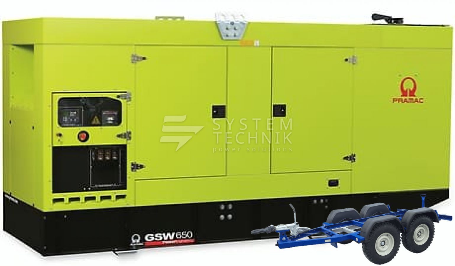- Дизельный генератор Pramac GSW 650 V 400V В кожухе на прицепе
