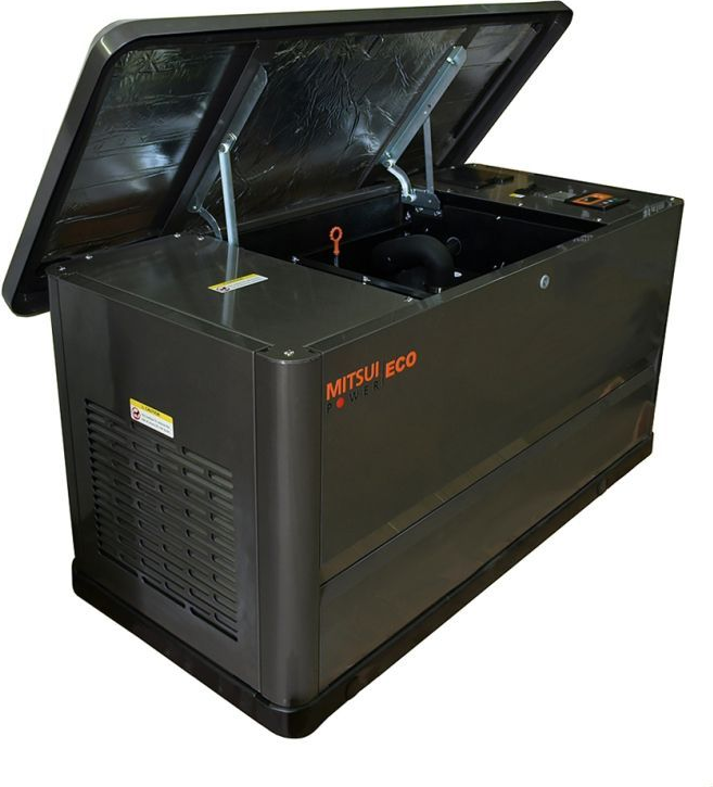 Трехфазная газовая электростанция в шумозащитном кожухе Mitsui Power GM 20000 с АВР изготовлена на базе двигателя Mitsui R999D с воздушным охлаждением. Генератор предназначен для организации автономного электроснабжения домов, небольших коммерческих, социальных и бытовых объектов.