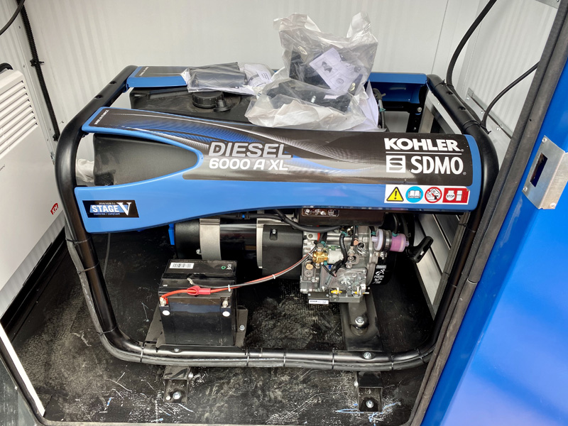 мощность 5 кВт, топливо: бензин , двигатель Kohler Diesel, объём бака 7.3 л, вес 75 кг , габариты 1000x810x660 мм